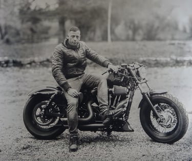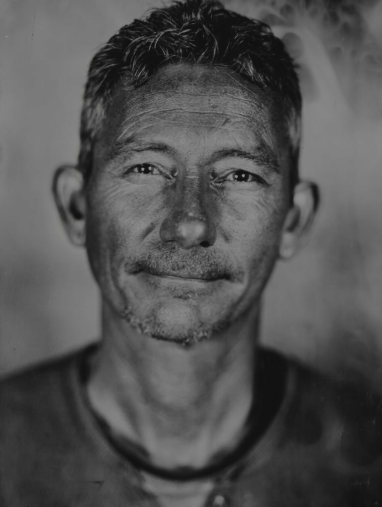 Situé près de Vannes dans le Morbihan, j'utilise le procédé du collodion humide, inventé en 1851, pour réaliser chez vous ou sur le lieu de votre choix, des ambrotypes (photographies sur plaques de verre) ou ferrotypes (sur métal).
